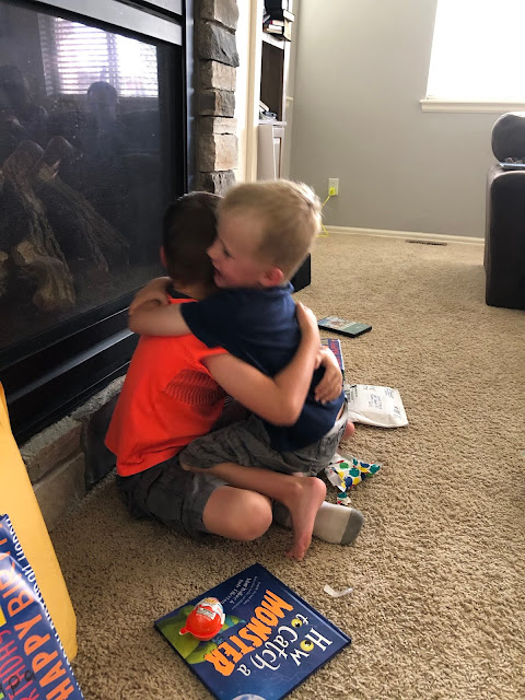 The Tuesday after getting back in town I had to take Wyatt and Kayden in for their doctor appointments. Wyatt's was a very easy and quick check. The doctor said he looked great and mentioned not to worry about his lymph nodes being more sensitive and swelling so easily. Then Kayden had his 4 month check up as well.