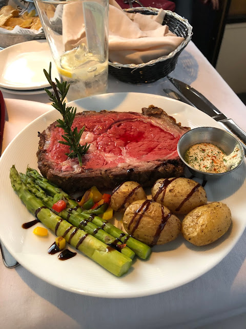 We were all really hungry and by the time we got our food the sun was starting to go down. I was sure glad that I had gotten the chicken when I saw how bloody the prime rib was. The chicken was super tough. The asparagus was pretty yummy though. Brandon ate his prime rib, not sure if it was good at all but he ate it. haha The kids ate their food and then as we reached the end of the track and were about to head back down the mountain we realized that we could have gone to an outside car to enjoy the views.
