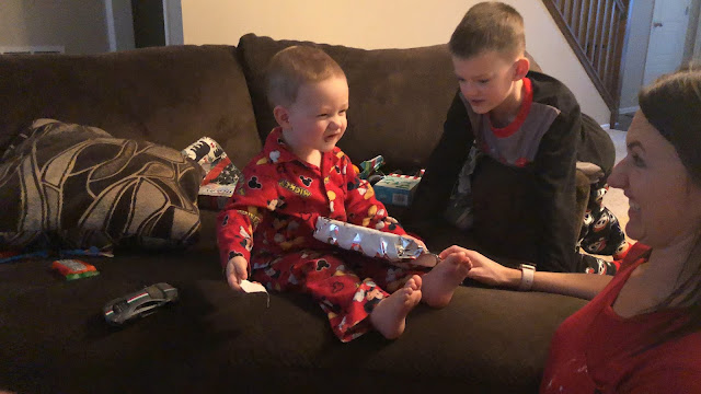 Kayden was so sleepy when he finally woke up so it took him a while to get excited. After waking up a little bit more he had a lot of fun opening up his presents.