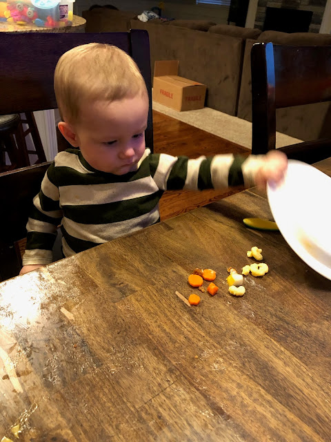 This kid.. haha when we put him in his booster chair and give him a plate he just wants to dump his food onto the table. He is such a mess maker.