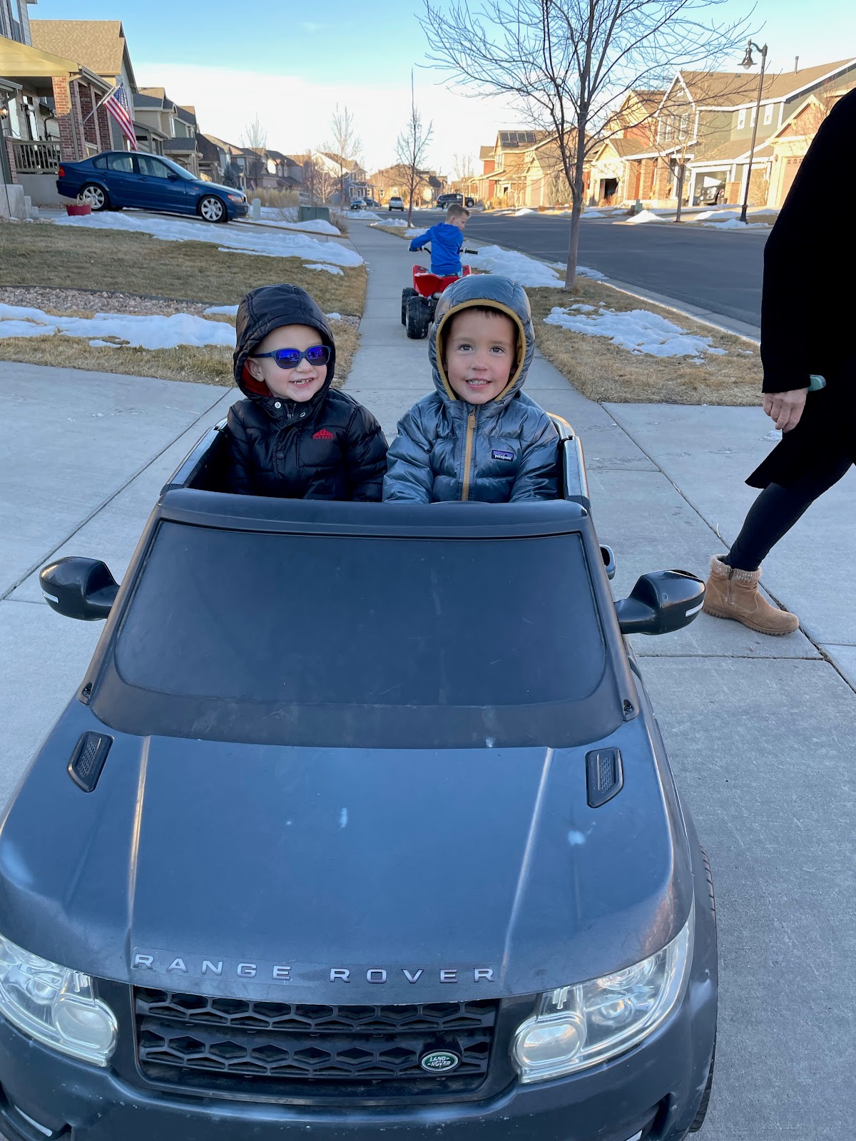 They had a ton of fun riding around in our power wheel. We spent a lot of time with them. We would go over to Papa and Gigi's house and play and then they would come over to our house and play a lot as well. Kayden loved it! They had a lot of fun together.