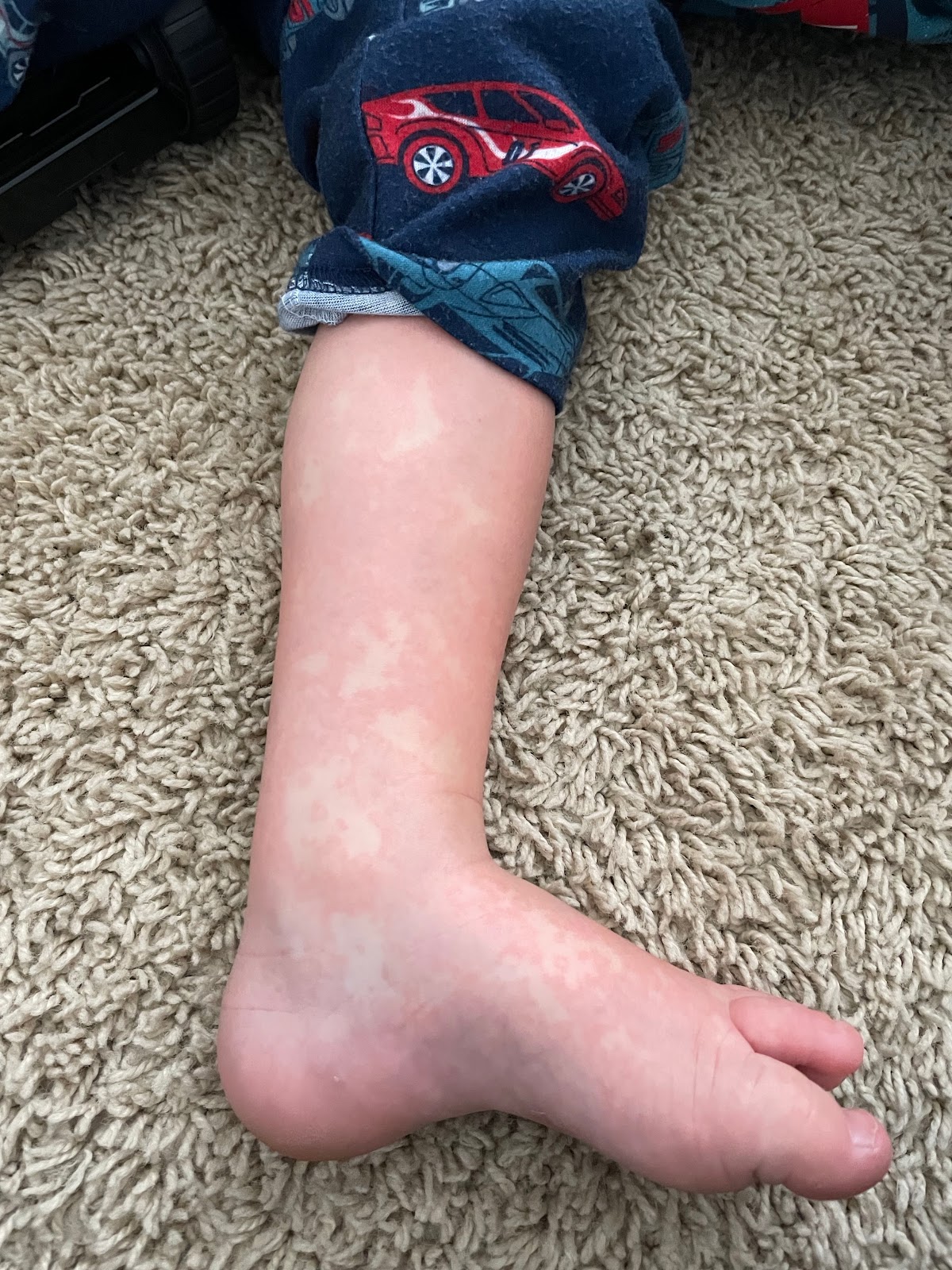 It reminded us of when Wyatt was super sick and got his rash after being on antibiotics. We ended up taking him in to the doctors to just make sure it wasn't cause for alarm. The only reason I wanted to take him in was because his temp was a little bit elevated and I was getting worried about him. The doc said that it was most likely just a reaction from the meds and that he can stop using the meds and take some Benadryl to help the rash go away. She said it should go away pretty quickly. Although, it ended up taking a few days of giving him Benadryl and rubbing Benadryl on him for the itchiness. Poor little buddy just couldn't catch a break!
