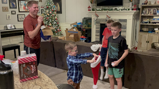 December was a busy month. I ended up being super sick for the first week and a half. Sicker than I have been in a really long time. I am actually not sure if I have ever been that sick. I had the worst cough I have ever had in my life and couldn't get much sleep at night for a week. I even had Brandon and my Dad give me a blessing because I was struggling so bad. So the first couple of weeks of December I was out of the picture. I missed a couple of Christmas parties and by the time I was feeling better it was game on time to make Caramel popcorn to give to our friends and finish getting ready for Christmas. It made the month disappear really quickly. Anyways, Emmett started the process of orthodontist work. He had to get an expander. So we had to go in and get everything ready for that. I was still sick when I took him but I was at least functioning. Wyatt got his top braces off and was scheduled to get his bottoms off shortly. Then Ashley and her family came out to visit. Which was super fun. Kayden loves being able to see and play with Harvey. It was a good but busy month like usual. haha