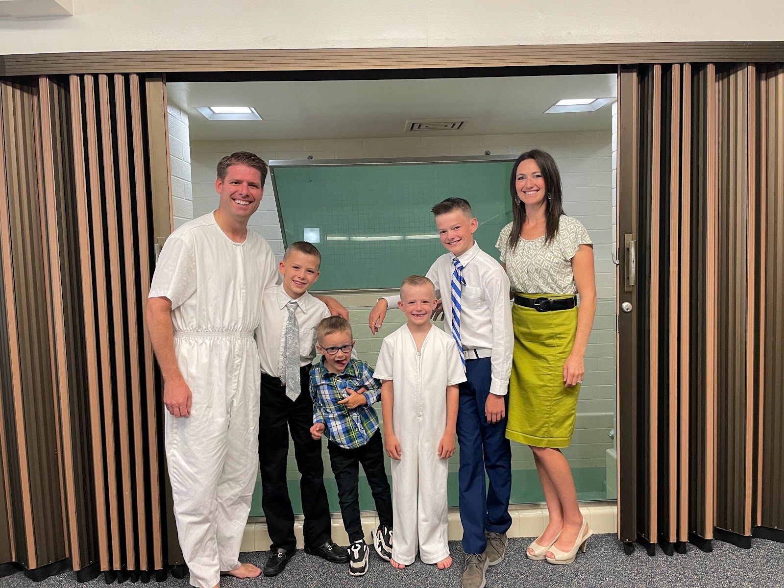 June 24th was Emmett's big day. Grandma and Grandpa arrived the day before and Tyrel and their kids came up the morning of the baptism. Emmett was super excited! The only bummers were that Papa couldn't be there because he had planned a camping trip with my brother Weston and his kids months before we picked a date for Emmett's baptism. So Papa was not able to be there and Aunt Vandy was not able to make it. Emmett was bummed about that but happy that some of his cousins were there and Grandma and Grandpa as well as Gigi were there. It was a good baptism service. It really ended up being just our family and like 3 friends. Which worked out. I just hope that Emmett remembers how he felt on his baptism day. It was a special day!